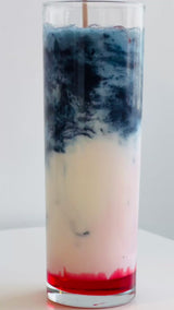 - Froth milk, hot/cold, into a creamy texture and pour the milk slowly over your whisked Blue Matcha.